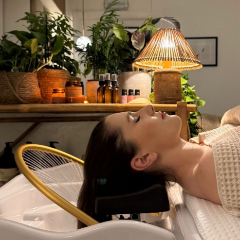 | This exclusive service provides a much-needed break from daily stress, leaving you feeling deeply relaxed, refreshed, and recharged. The treatment aims to refresh the scalp, remove impurities, and restore the natural shine of your hair. | |